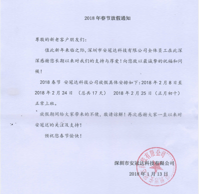 安冠達春節(jié)假期